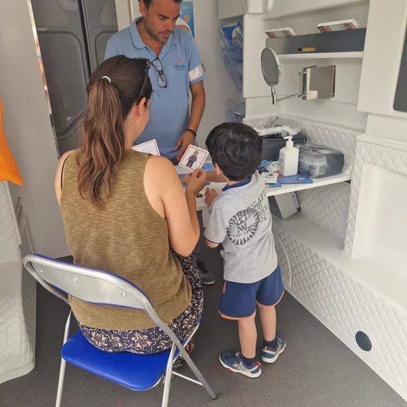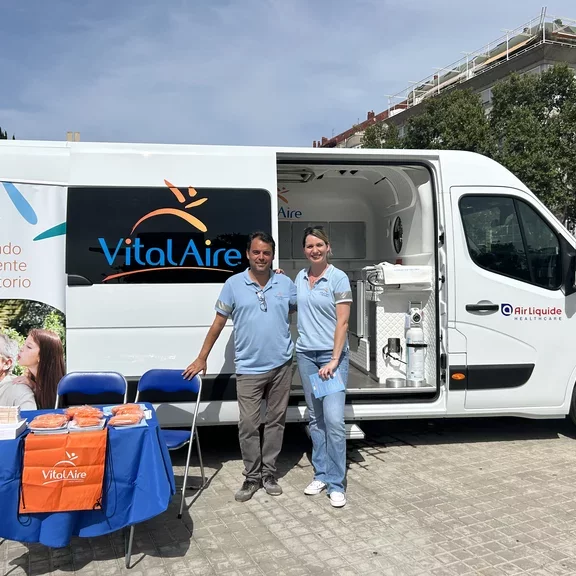La 'Inspira Mov' es una furgoneta con una consulta móvil integrada con la que VitalAire accede a zonas rurales o de difícil acceso y también con la que es posible atender a pacientes fuera de las consultas y hospitales. Desde este espacio, Bárbara y José han contribuido a la sensibilización de la población a través de diferentes actividades educativas.