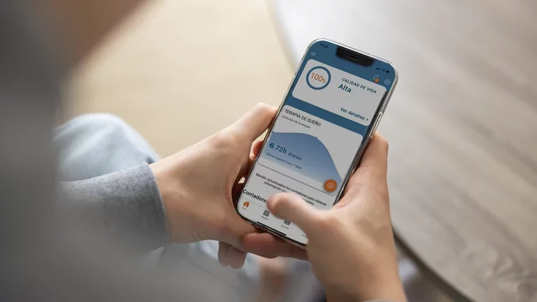 "Mi VitalAire me ayuda en el seguimiento de mi terapia respiratoria. Con los contenidos de la App, aprendo cada día consejos nuevos para mejorar mi adherencia al tratamiento", declara Marta, paciente de apnea del sueño.